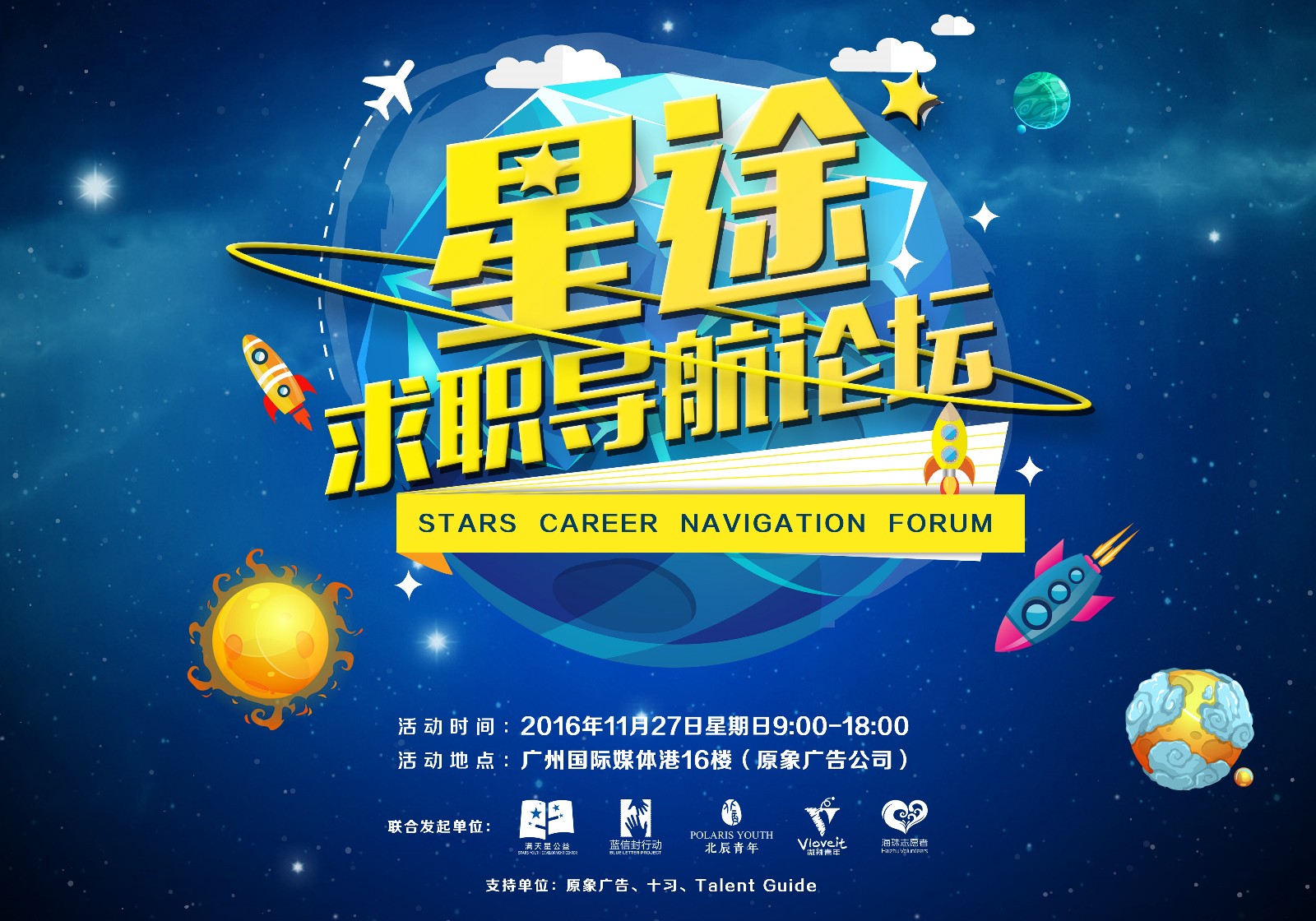 星途求职导航论坛是由满天星公益、北辰青年、微辣青年、海珠区青协以及蓝信封五个知名组织联合发起一场面向青年学生的求职导航论坛,背后满是支持青年人成长的经验和专业,希望能为其提供学习、成长的平台。