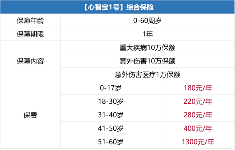 保险类型:综合保险、重疾保险、意外保险