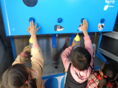 可爱的伙伴:启用了儿童友好的外观设计和操作界面,从出水按钮的高度到设备外观的皮肤设计,从可爱的糖果色彩到瓶口直径的斟酌,项目设计从喜爱到适用,让孩子多喝一口干净的水。