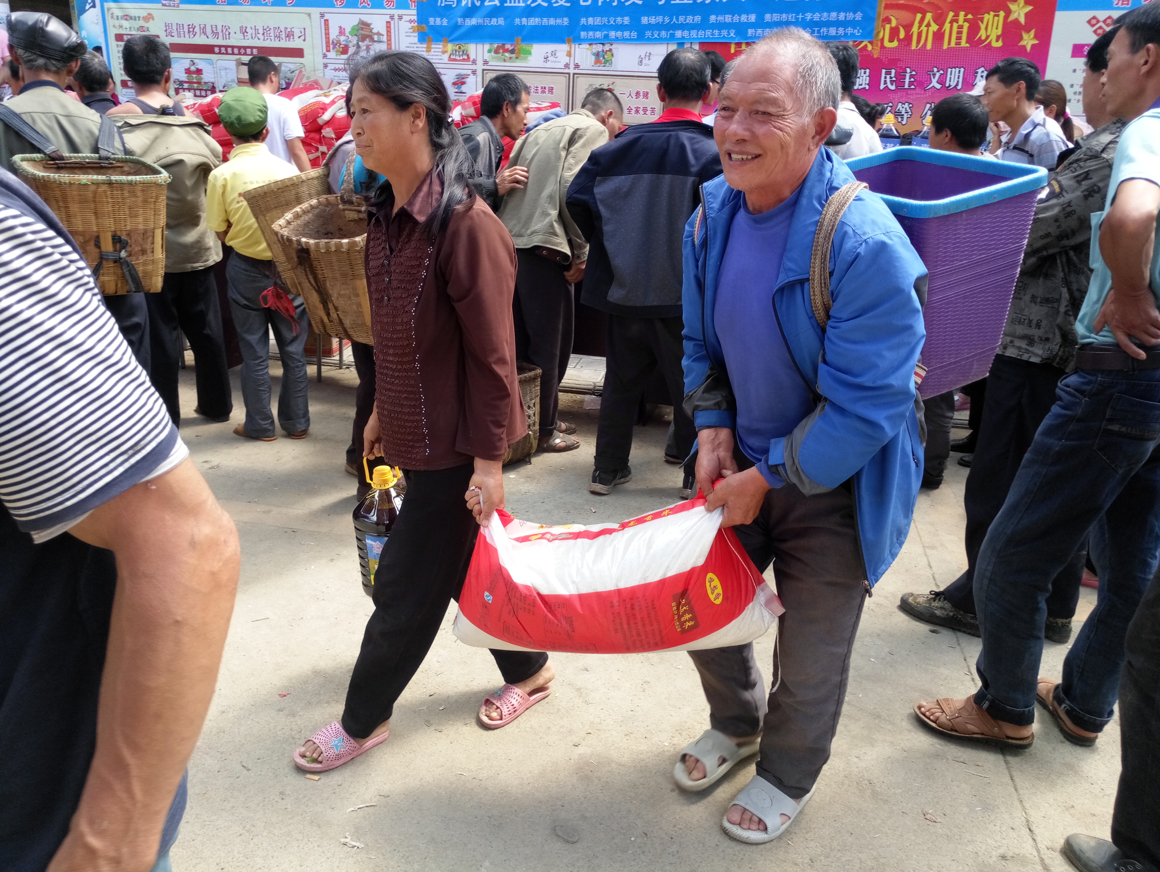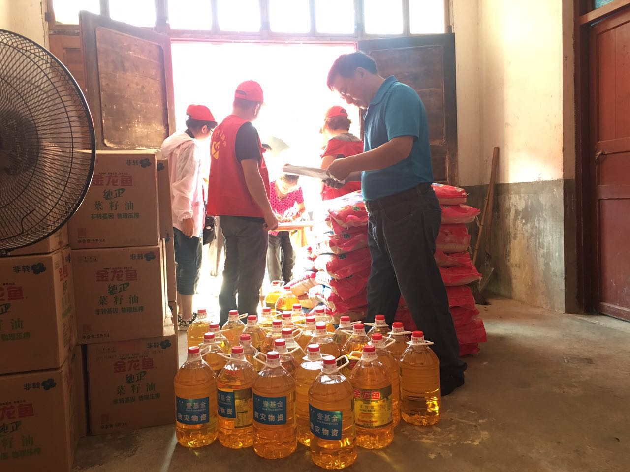 2、6月4-5日,贵州省余庆县多地遭受大暴雨袭击。壹基金联合救灾贵州网络于13日为灾民及儿童发放大米283(20kg/袋)袋、菜籽油283(5L/桶)桶、温暖包157个、复合肥60袋。
