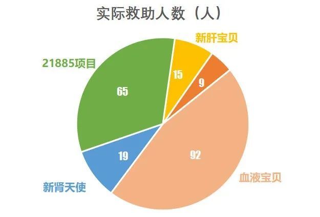 主要救助项目包括“新肝宝贝”、“新肾天使”、“烙印天使”、“限量天使”及“21885”。截止至2017年底,救助大病患儿7000余名,捐款人遍及全球28个国家和地区,受益人遍布全国31个省市自治区直辖市。