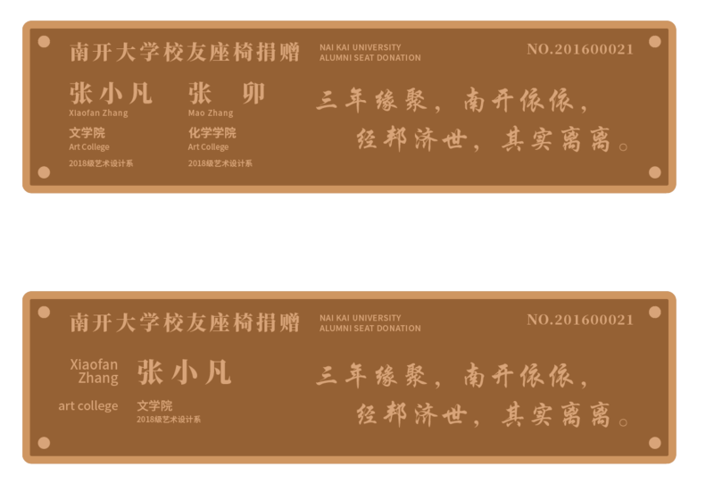 您在捐赠过程中可以提交校友椅上镌刻的文字