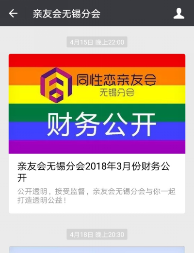 我要做点什么来拯救我自己。2016年底,我找到同性恋亲友会的公众号,在后台报名线上志愿者,并通过她她姐和花姐找到了亲友会无锡分会,加上了后来我非常信任的伙伴:同风和小正。