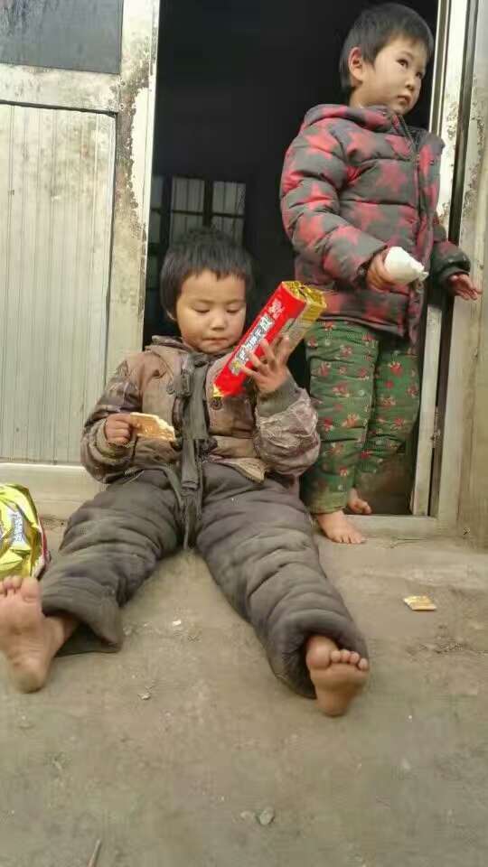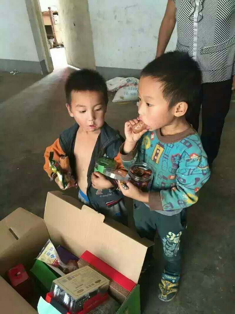 二、哥哥手中的火腿肠 2016年的八月十五,泗水县微公益协会接受了一家公司的50份爱心大礼包,礼包中包含干鱼片、月饼、火腿、蜂蜜等等。在对接孩子的过程中,一张兄弟俩吃火腿肠的照片让志愿者潸然泪下:弟弟嘴里吃着自己的火腿,还眼巴巴的看着哥哥手中的火腿.可怜的孩子是多久没有吃肉了。