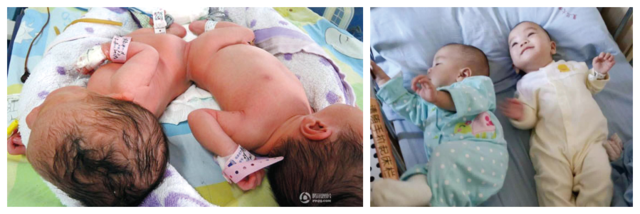 2015年3月17日晚,江西省赣州市宁都县人民医院,一名孕妇剖腹产下一对连体女婴,两个女婴屁 股相连,体内很多污物无法排泄。据主治医生介绍,若三四天内不能实施分离手术,可能危及生命,而赣州此前没有给连体婴儿实施分离手术的成功案例,建议连体婴儿尽早送往上海或广州的大医院进行分离手术。19日晚,这对连体婴儿在120的护送下奔赴前往上海复旦大学附属儿科医院,江西当地多家媒体对连体女婴事件进行了报道,广受关注。天使妈妈积极发动爱心人士为孩子筹款,在大家的共同帮助之下,两姐妹已于2015年6月9日在复旦儿科医院成功完成了分离手术。