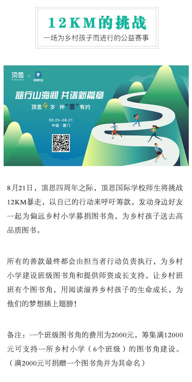 2009年全国首创至今已经成熟运作11年,荣获“年度阅读推广机构”和“首届华文领读者大奖”,入选中国好公益平台“优质公益产品”。在乡村小学每个班级标配一套经过24位国家书目审定委员会专家审定的分级阅读的70本国内外经典图书,涵盖人文、艺术和科学三大领域,全面滋养乡村孩子的生命成长。