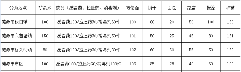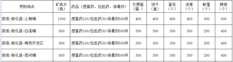 目前灾区急需雨衣、雨鞋、救灾帐篷、棉被等物资,为灾民搭建临时安置场所。以及筹集大米、食用油、矿泉水、方便面等基础食物,作为灾后灾民的必要口粮。