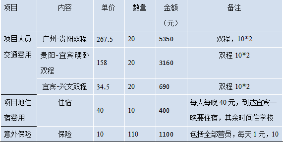 项目预算费用