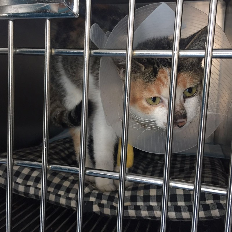 后腿严重腐烂,已经做了截肢手术,绝育手术也做完