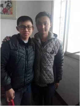 (2012年冬天,左一卓亚“牵手”时值高三的覃佐辉)