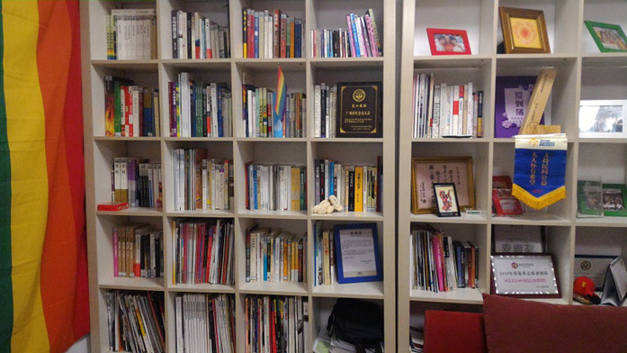 亲友会办公室的书架上有很多很棒的同志书籍!这里亲友会文化的一种很好的体现。